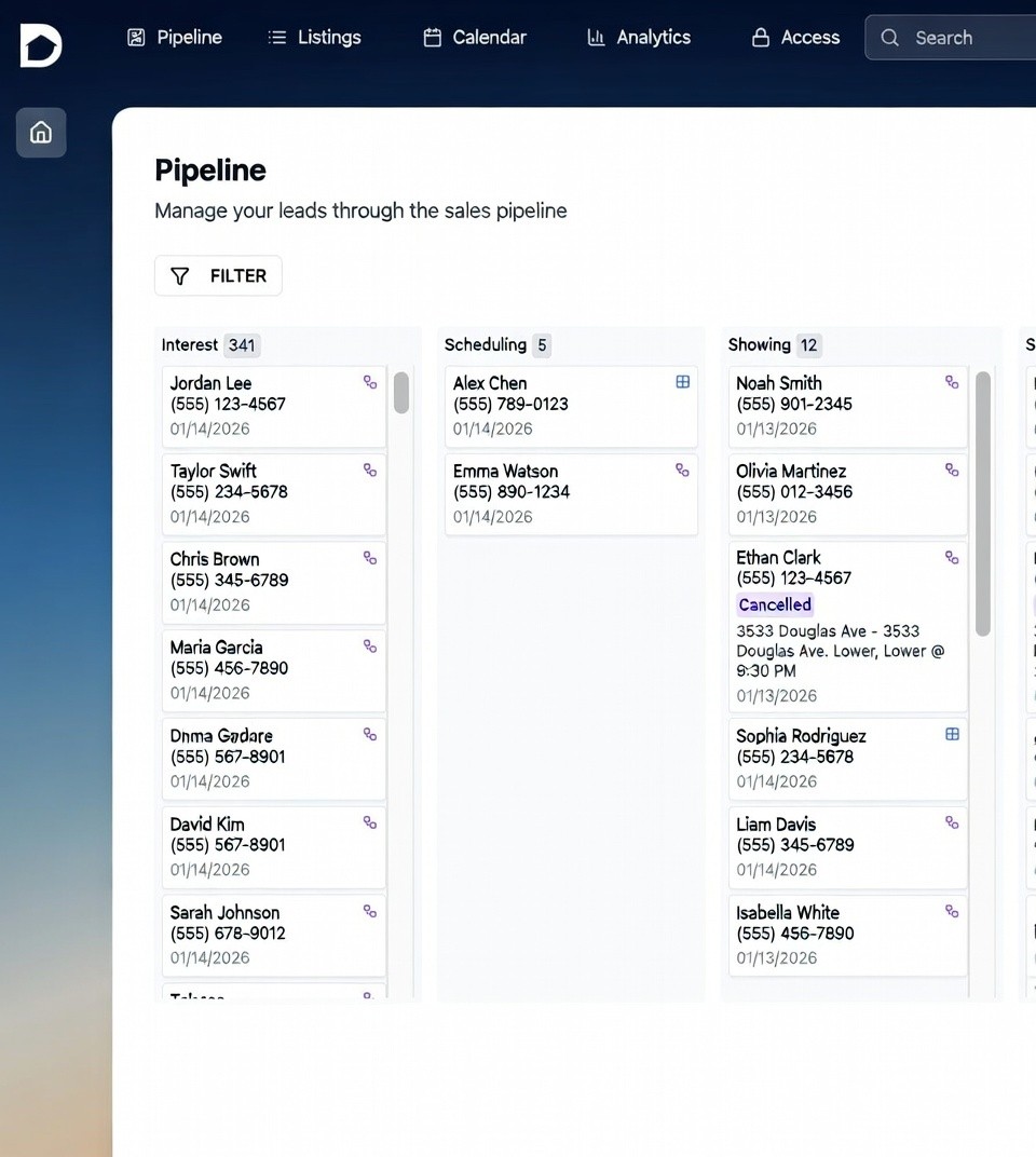 Your Leasing CRM that follows up instantly, books tours, and keeps every lead moving